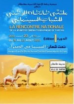 تستضيف مدينة طانطان من 19 الى 23 غشت الجاري، ملتقاها الوطني الأول للشباب السينمائي، الذي تنظمه جمعية رباط الأخوة للتنمية بطانطان بتعاون مع مؤسسات عمومية وخاصة ،وذلك تحت شعار" السينما بالصحراء : من اجل نشر وترسيخ الثقافة السينمائية بالأقاليم الجنوبية".