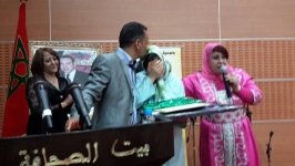 ليخلص الحفل إلى النقطة التي أفاضت الكأس؛حيث الاحتفاء بالإذاعية المبجلة فاطمة عيسى؛والتي قدم كل من د مصطفى الشكداني و ذ كريم القيشوري شهادة في حقها؛ باعتبارها أول امرأة تمارس العمل الإذاعي وهي في سن الطفولة. وقد أشاد د الشكداني على الخصال الحميدة التي تميز السيدة فاطمة ؛إن على مستوى ممارستها العملية أو الأسرية ؛ معتبرة إياها أول من انفتح على برامج "الطابو" ضاربا المثال بالأمهات العازبات ؛ كما اعتبر أنها يرجع لها الفضل في إحياء مخزون ذاكرته من اللغة العربية وتحفيزه على الكلام بالعربية/الدارجة في برنامج من البرامج الذي استضافته فيه وهو إذاك أستاذا للغة الفرنسية.. ومنذ ذلك الحين وأنا أتكلم العربية بطلاقة يقول د مصطفى. كما أبلغ الحضور بأنها أول من أذاع بالقول من إذاعة طنجة " هنا إذاعة الجزائر" بعد استقلال الجزائر؛ لأنها كانت تعمل بإذاعة جزائرية مقيمة على أرض طنجة؛ هي إذاعة "أفريقيا وموريتانيا".