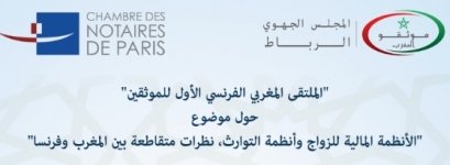 ينظم المجلس الجهوي للموثقين بالرباط بشراكة مع غرفة الموثقين بباريس الملتقى المغربي الفرنسي الأول للموثقين تحت شعار"الأنظمة المالية للزواج وأنظمة التوارث، نظرات متقاطعة بين المغرب وفرنسا" "، وذلك يوم الجمعة 27 نونبر 2015 بالرباط