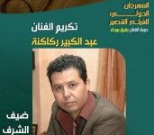 تكرم الدورة الأولى لفعاليات المهرجان الدولي للفيلم القصير التي تنظمها جمعية ملتقى الطفولة والشباب بالفقيه بن نصالح من 24 الى 27 من شهر يناير الجاري، الفنان والممثل المقتدر عبد الكبير الركاكنة كضيف شرف.